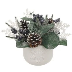 This tabletop mixed pine, berry and pinecone arrangement is perfect for adding to your winter décor. Place it on your table or counter for the perfect look!