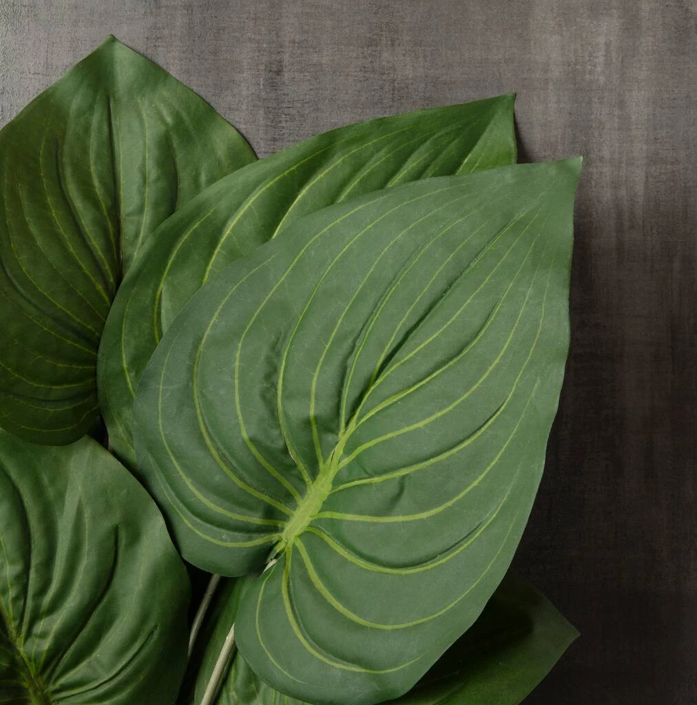 Giant realistic hosta leaves in stem are perfect for crafting your ideal home arrangement or simply dropping into a vase for instant and beautiful touch. This item not only looks real but also feels real to the touch due to its innovative textured coating.