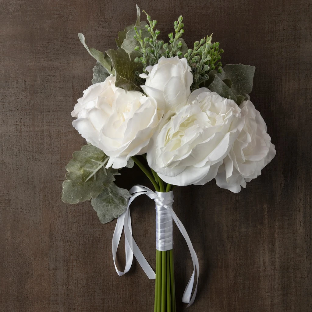 Add a lovely delicate touch to your floral arrangements and wreath projects with this pretty bundle of rose stems accented by silvery leaves and tiny green berries. Place in a glass vase on its own or in a wicker basket among dusty pink blooms and greenery on a table or windowsill to add depth and softness to your décor.