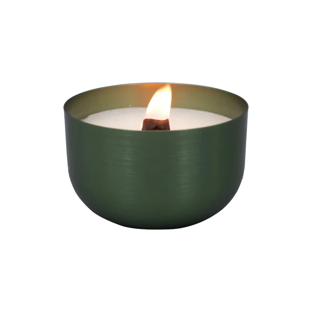 - Paraffin wax, palm wax, metal, wood and fragrance