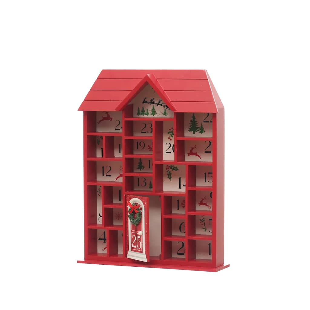 Count down the days to Christmas by hiding teeny treats, notes, or toys within. Classic house design adds to everlasting holiday appeal.