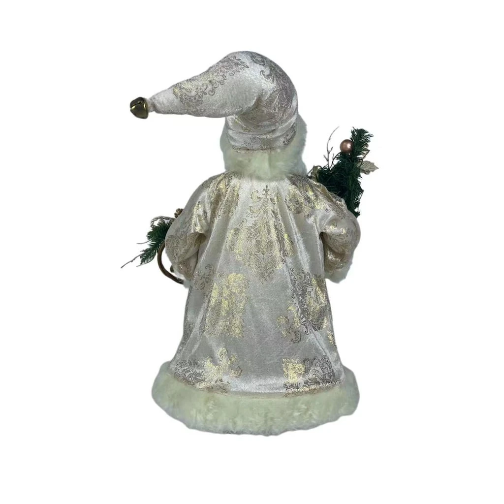 All dressed up in ivory satin and velvet, this Saint Nicholas figurine is sure to bring festive cheer to your home. Display this charming piece alongside a miniature lit evergreen decked out in sparkly ornaments on your mantel for the holiday season.