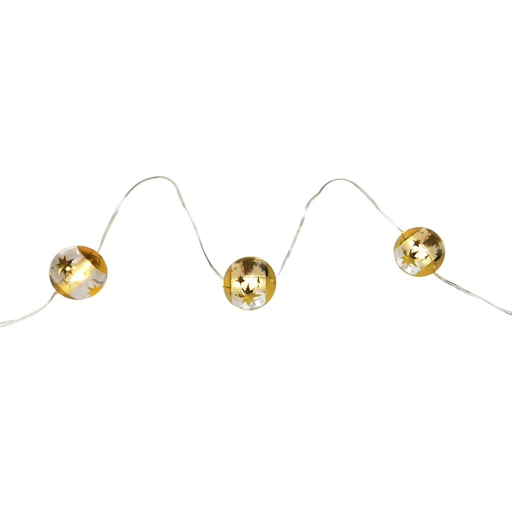 Make the season bright with these festive ball-shaped crafting lights decorated with shiny gold stars! These battery-operated warm white LED bulbs on a silver wire feature steady burning, fading and flashing light settings and a timer. These lights are ideal for use in handmade gifts and lit holiday floral dรฉcor to display in your home for the Christmas season.