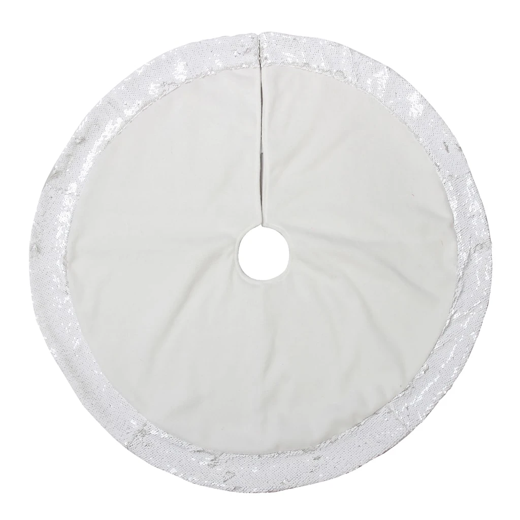 This white and sequined pencil tree skirt is guaranteed to complement your tree. Team it with bright ornaments and lights for the perfect holiday display.