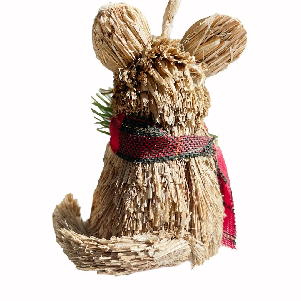 Who said Christmas ornaments should only be round glass balls? Meet your new favorite addition. This mouse ornament will be perfect for embellishing your tree, wreath, or other holiday décor. He poses in a plaid scarf with pine, a pinecone, and red berries. This ornament is sure to be your next conversation starter at your Christmas gathering.