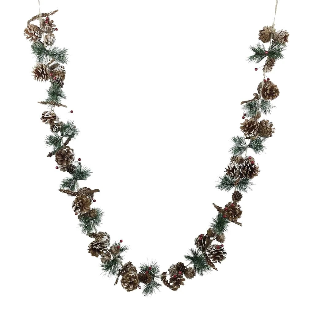 Give your holiday decorating a lovely touch of festive greenery with this garland of snowy pine and pinecones. Embellish with sparkling clear lights and ribbon or display as is draped over a doorway, window frame, mantel or bannister to bring a little magic into your home this Christmas.