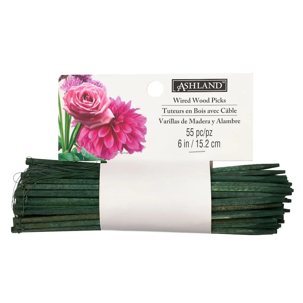 Make circular, triangle, crescent or fan shaped floral arrangements using these Wood Picks by Ashland. Attached with matching wires, these picks are perfect for adding length or thickness to flower heads, while crafting foam-based arrangements.