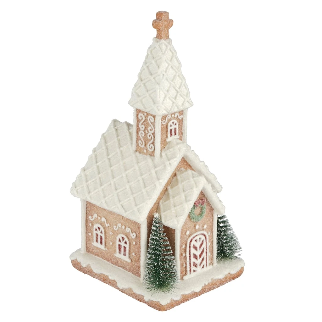 Bring sweet wintry cheer to your holiday dรฉcor with this darling gingerbread church table accent from Ashland. Covered in “snow” made to look like sugar and icing, this festive piece will pair perfectly with a small lit tree and welcoming sign on your entryway table.