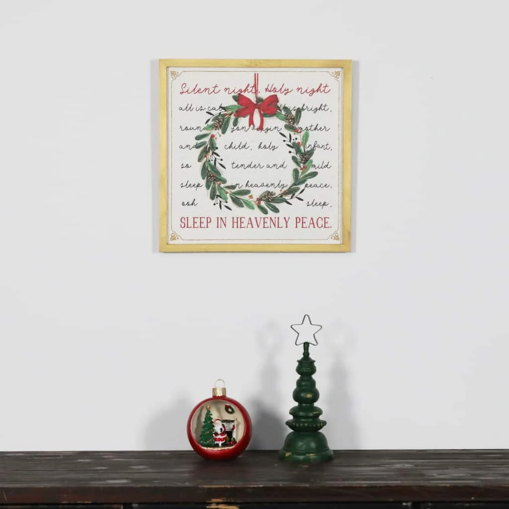 This Christmas wooden wall frame is perfect for lending your Christmas dΓ©cor a jolly touch. Hang it on your living room wall surrounded by ornaments for a merry look.