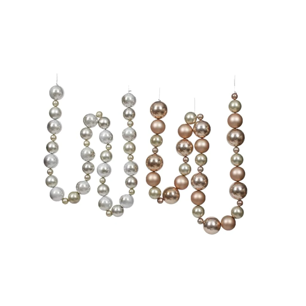 Bring a touch of Christmas magic to your decorating with this lovely garland of shimmery round balls with a pearl finish. This pretty string makes a great addition to your tree, or drape over a doorframe, mantel or bannister paired with lights and ribbon for a festive display full of holiday cheer.