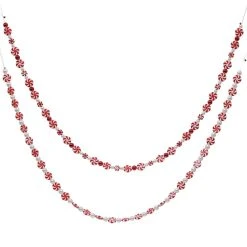 Bring a touch of Christmas magic to your decorating with this playful garland of round red and white peppermint candies and shiny beads. This fun string makes a great addition to your tree, or drape over a doorframe, mantel or bannister paired with lights and ribbon for a festive display full of holiday cheer.