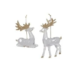This beautiful clear and glittery gold deer ornament is perfect for sprucing up your holiday décor. Use it to embellish a tree, wreath, or garland for a whimsical display!