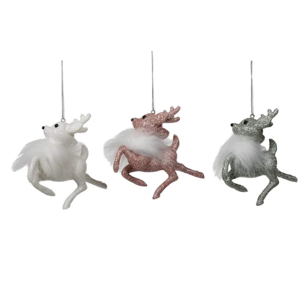 This beautiful glittery deer ornament is perfect for sprucing up your holiday décor. Use it to embellish a tree, wreath, or garland for a whimsical display!