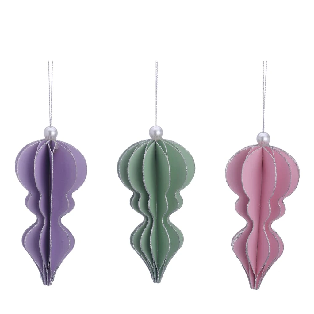 Give your holiday tree a lovely soft touch with this pretty pastel accordion fold drop ornament from Ashland. With glitter on the edges and a pearl bead on top, this piece is sure to bring cheer to your home this Christmas.