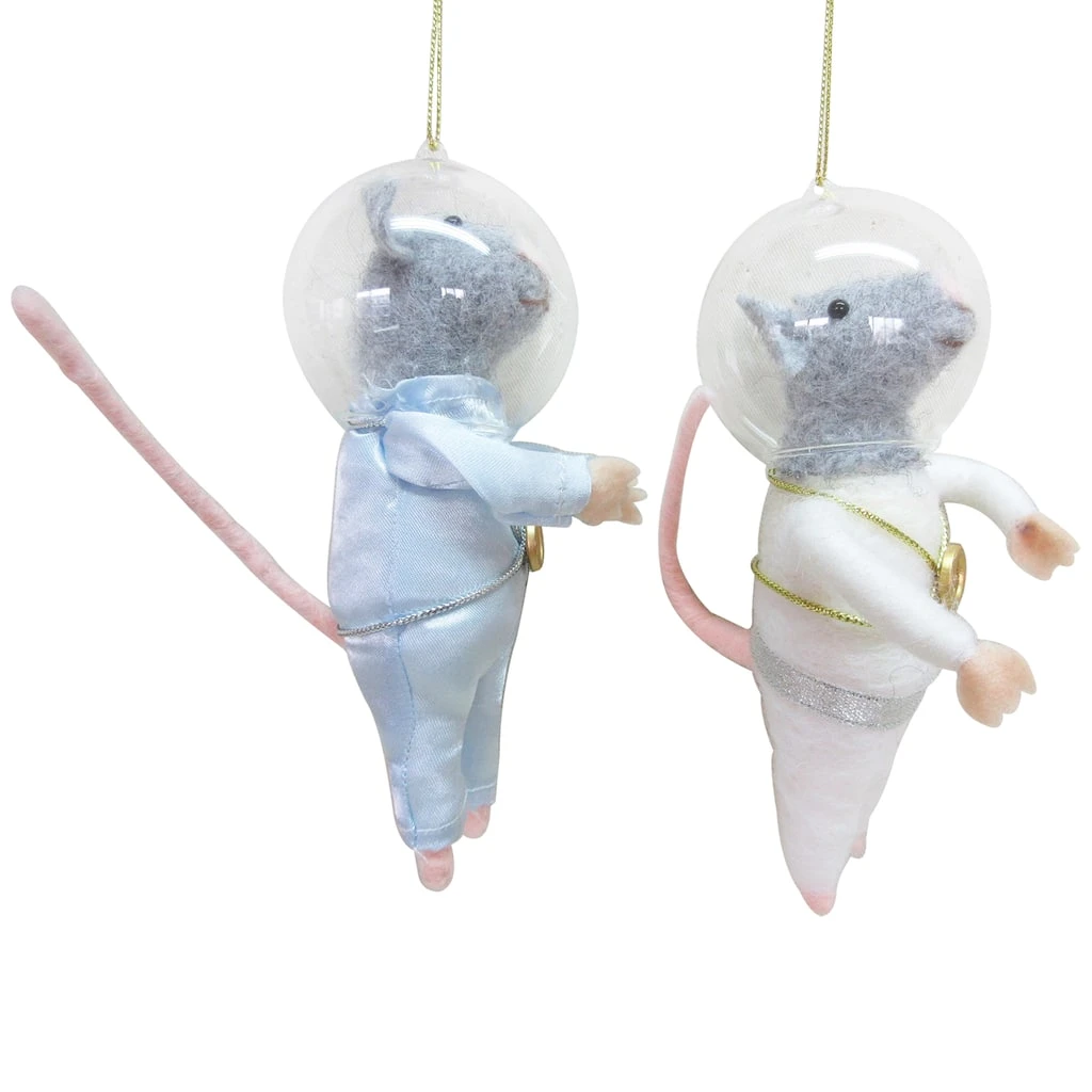 This fun mouse astronaut ornament is perfect for sprucing up your holiday dรฉcor. Use it to embellish a tree, wreath, or garland for a whimsical touch!