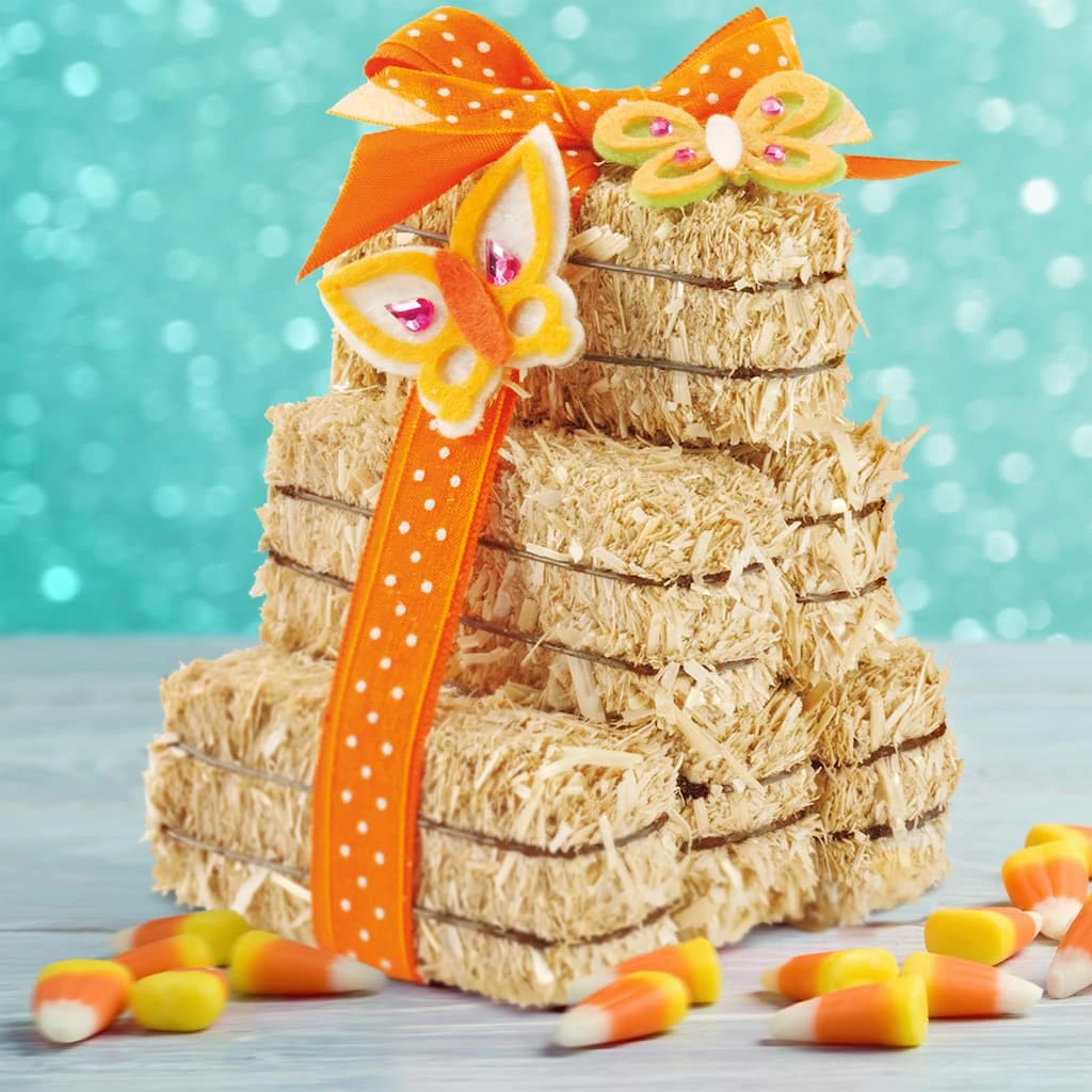 This decorative straw bale is made from high-quality, natural, barley straw. Sun-baked straw has a rich, golden color that is perfect for indoor or outdoor home dΓ©cor and is bound with durable, rust-resistant, galvanized wire. Display one bale by itself or stack a few together to create a fall display. The 2.5″ straw bale size is great for adding a rustic, farmhouse-chic or western style to special events like weddings, birthdays, engagement parties, baby and bridal showers and graduation parties.