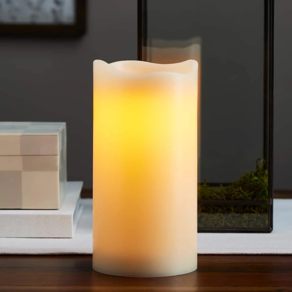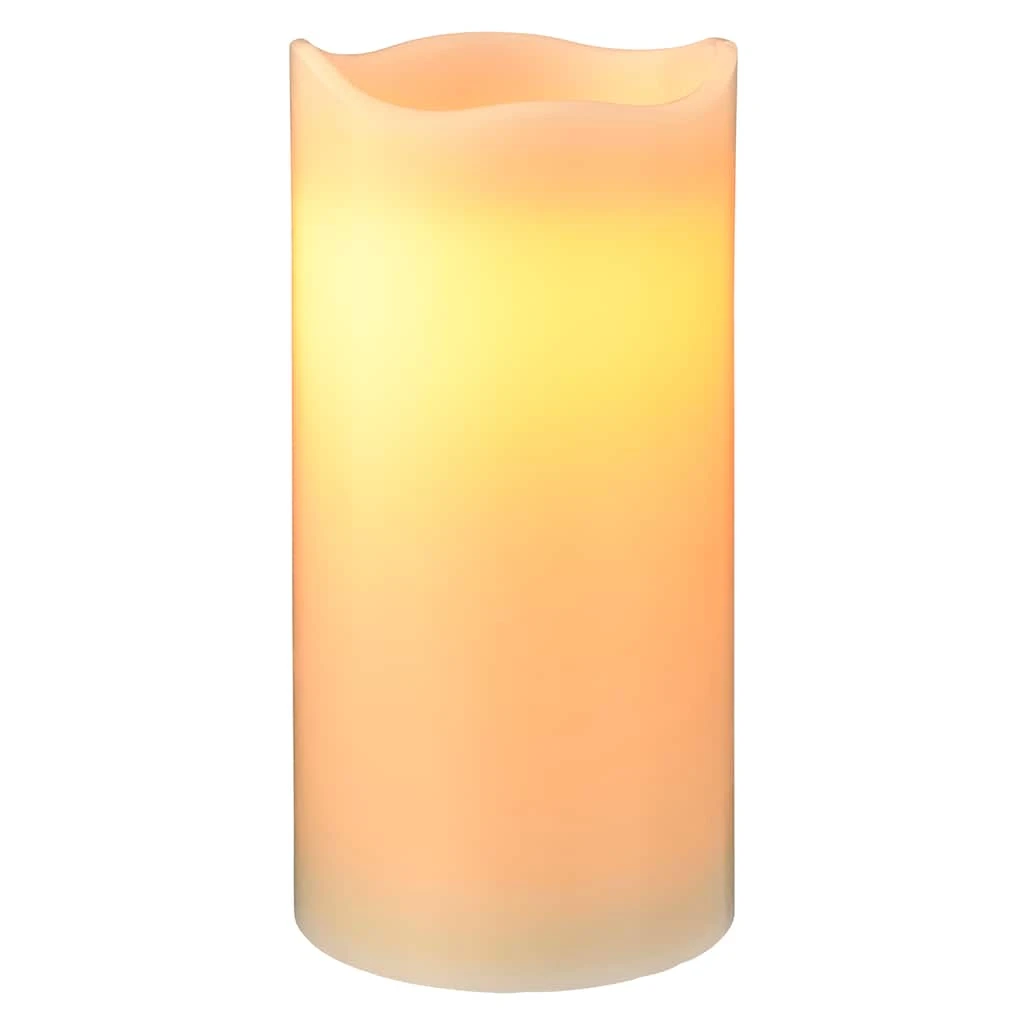 Add the beauty and fragrance of a flickering candle to your home without the flame! Made with real wax and a realistic melted edge, this ivory-colored candle has the look and feel of a real wicked candle. Flickering LEDs create a natural and realistic glow. Candle includes a 5-hour timer.