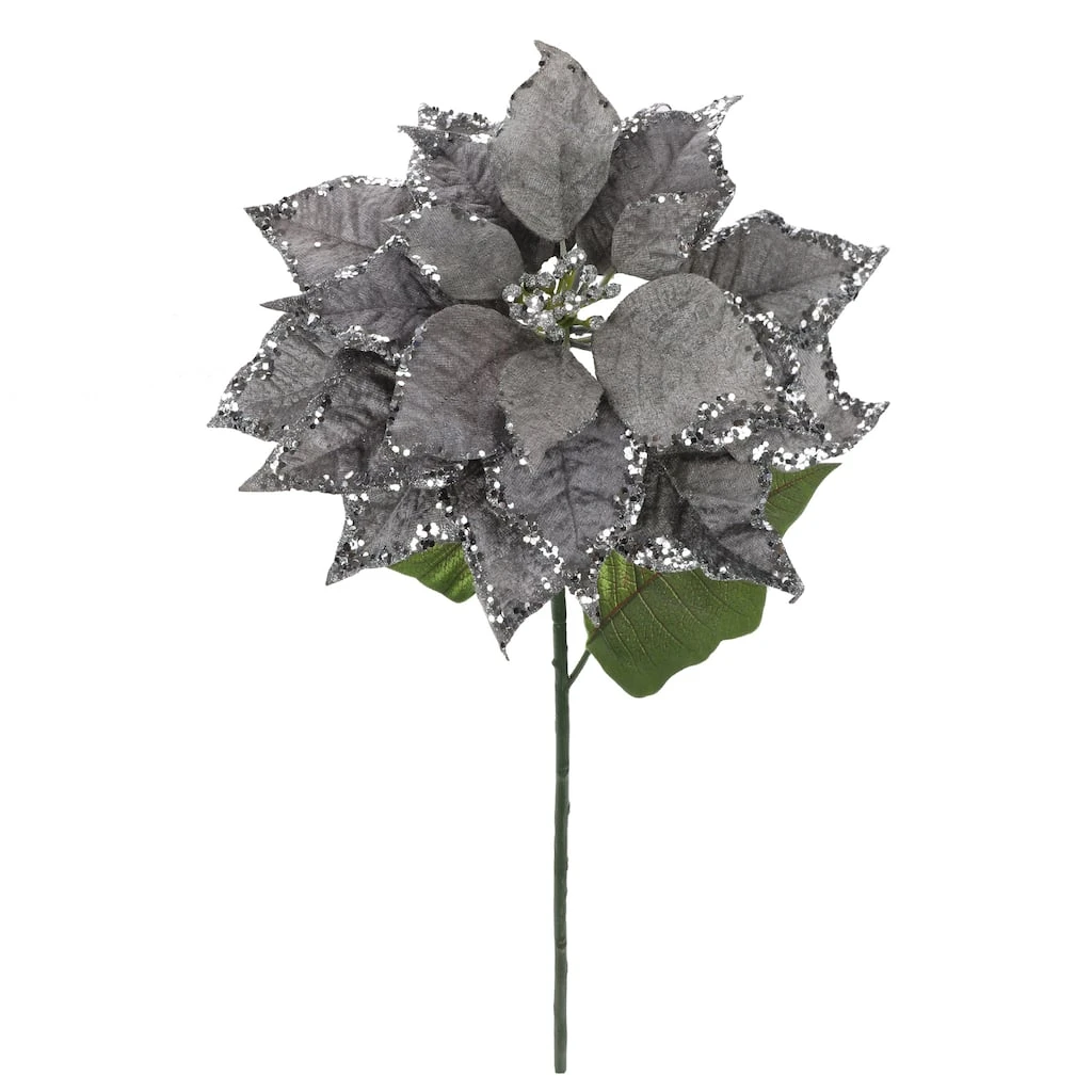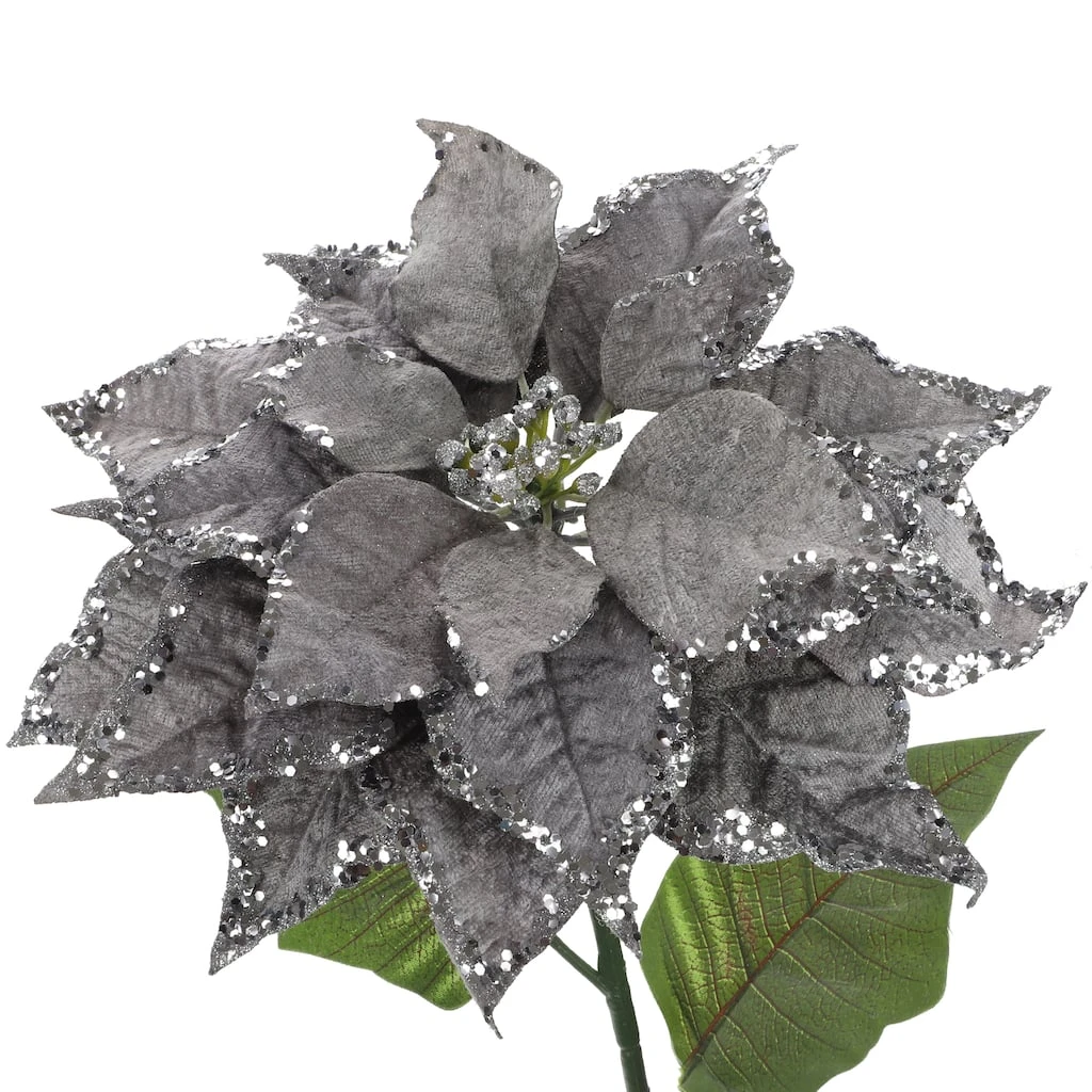 Wholesale 🥰 Glittery Silver Poinsettia Stem by Ashland® ⭐