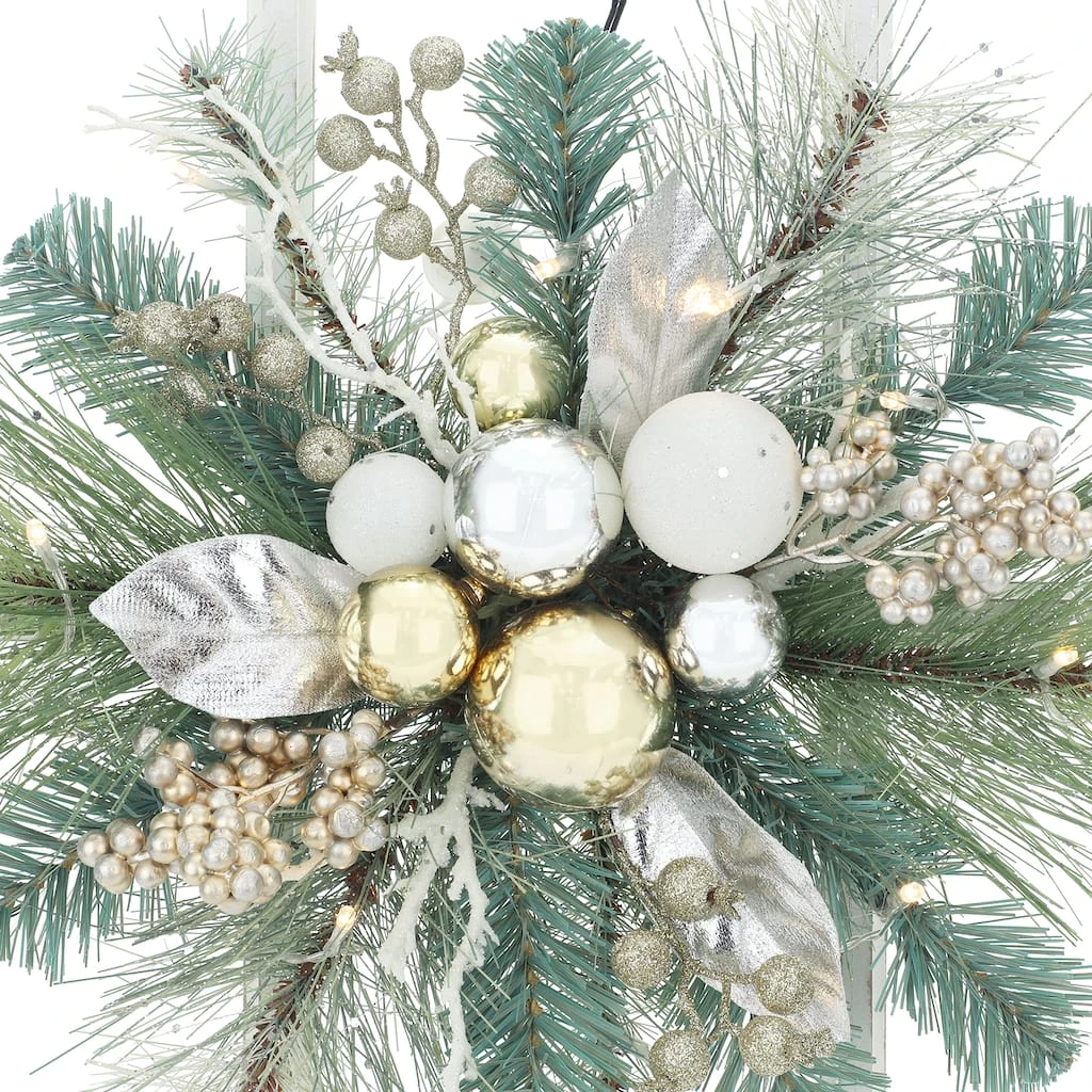 Bring a festive wintry touch to your home this holiday with this lovely lighted wall hanging from Ashland. Featuring a whitewashed window pane holding an arrangement of frosted pine and shimmery ornaments, this piece is sure to add a little Christmas magic to your décor.