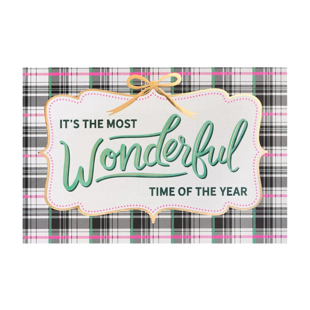 This flip top decorative box is the perfect piece for your home décor and storage. It features a seasonal design with “It’s the most wonderful time of the year”, Christmas trees, and a plaid design on the flap.