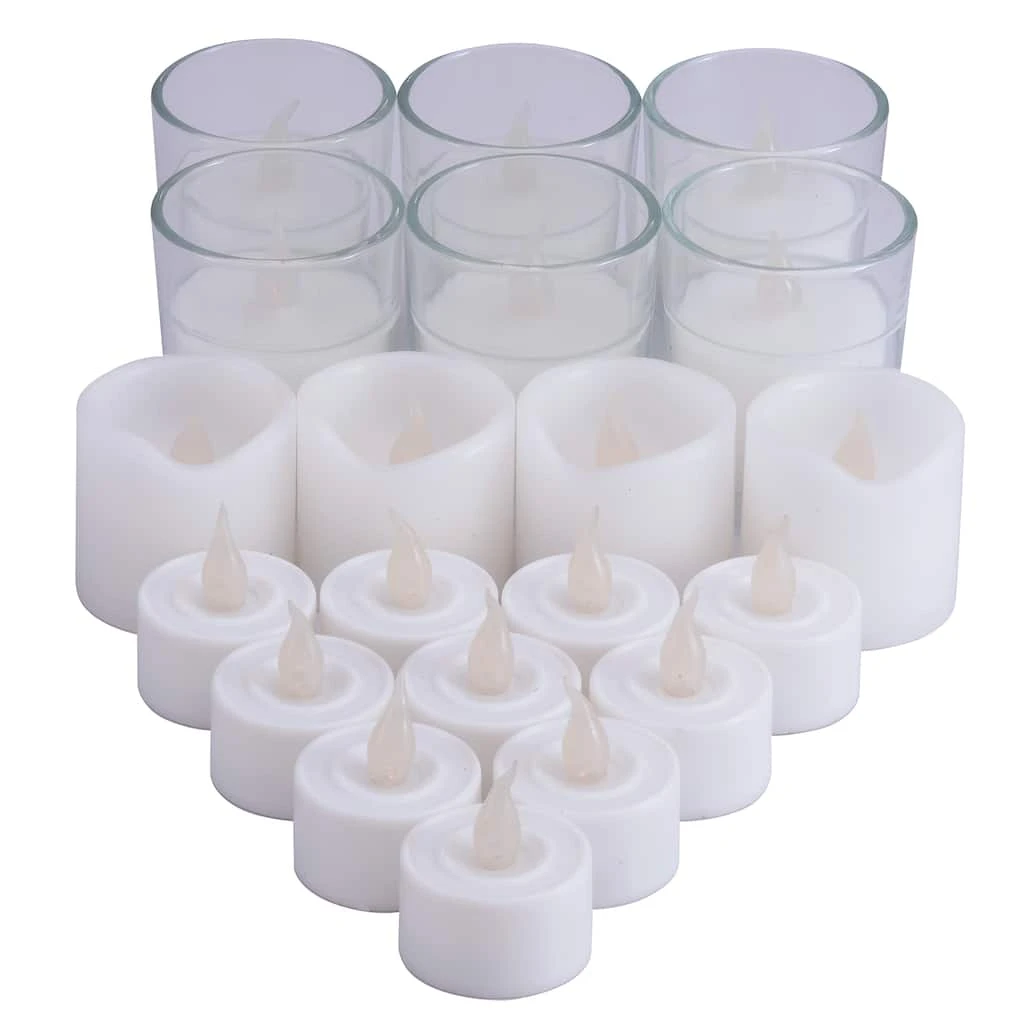 - 6 glass LED tealights (2.56″ x 2.08″ diameter)