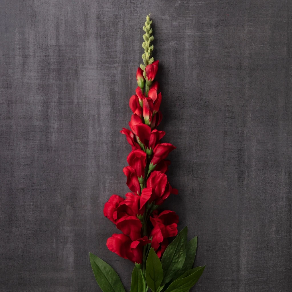 Pair this red snapdragon stem with colorful flowers and seasonal accents for a beautiful floral arrangement. Place it in a tall vase to show off in your living room–it’s guaranteed to transform your home décor.