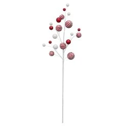 This red and white ball ornament stem is perfect for transforming any holiday floral arrangement. Pair it with glittery poinsettias and other whimsical picks for the perfect look!