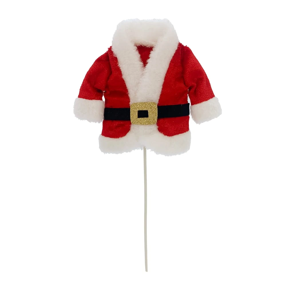 Add a fun, festive touch to your holiday décor by adding this adorable Santa suit pick to your wreaths and floral arrangements. Use to give a little playful Christmas cheer to a vase of vibrant red blooms and lush greenery on a mantel or entryway table in your home.