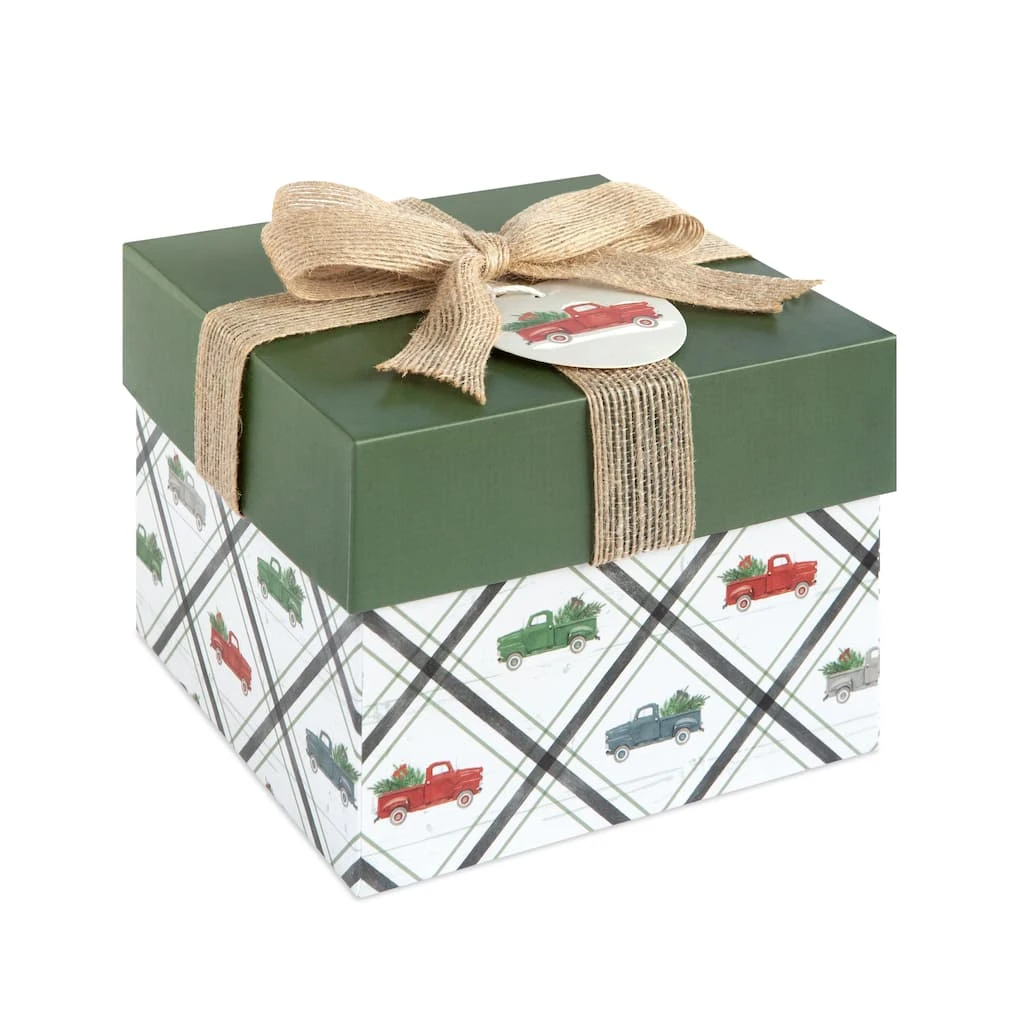 Elevate your gift presentation with this decorative gift box. It features a plaid pattern and is accented with a bow on top.