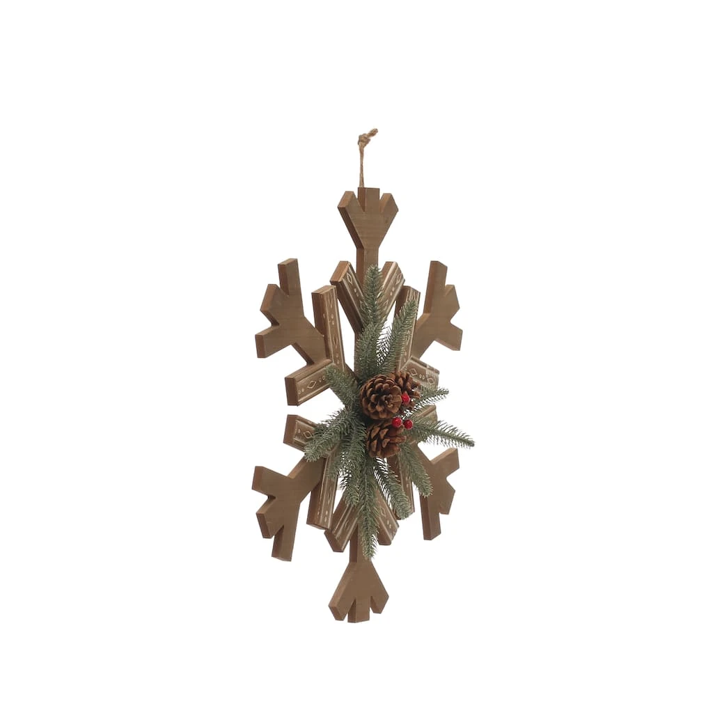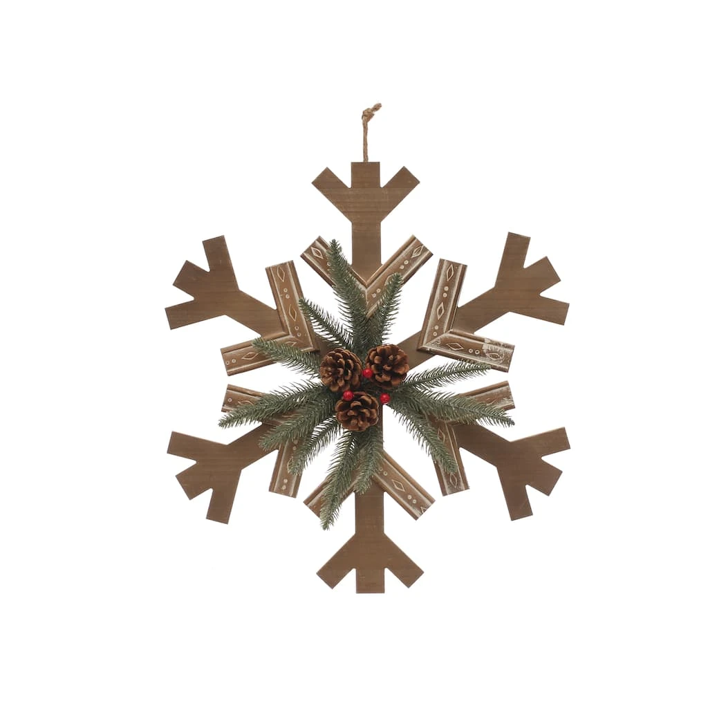 Add this decorative snowflake to your winter wall décor. It features pinecones and pine accents, making it perfect for the season.