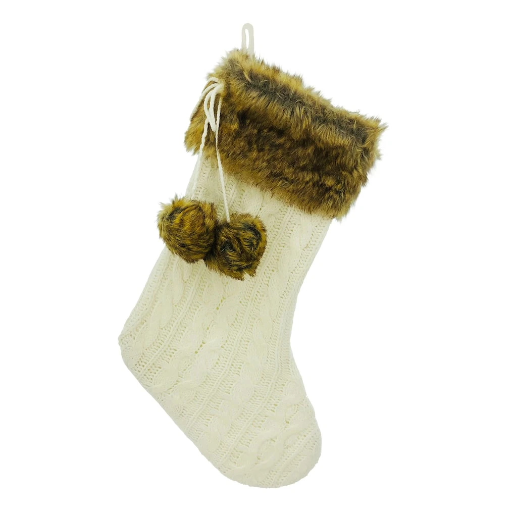 This charming Christmas stocking, featuring a cozy cable knit with a faux fur cuff and pom pom tassels, is a fantastic way to complete your holiday decorating. Hang this festive stocking from your mantel to add extra cheer to your home for the season.